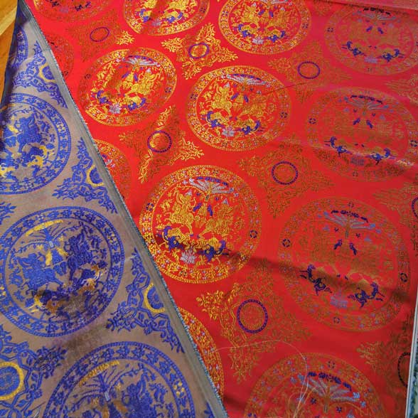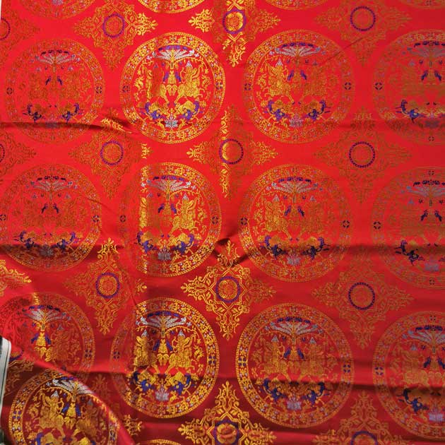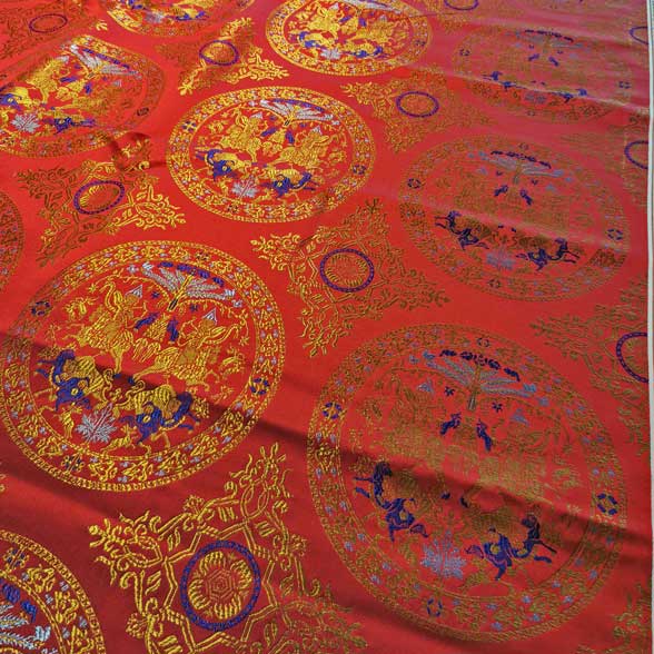 - Es gibt verschiedene Exemplare dieser Seide in ganz Europa: Das Tuch von Saint-Calais, das Tuch von Saint-Cuthbert von Köln und Saint-Ambroise von Mailand zeigen ein exakt identisches Muster. Nur die Hintergrundfarbe variiert: blau oder grün. Ein ähnlicher Stoff wurde auf einem Kleid in Pskov, Russland, IX. Jahrhundert verwendet.