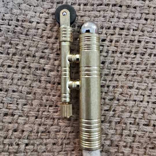 - Lunte etwas heraus ziehen und mit dem Rad und dem Feuerstein funken erzeugen bis die Lunten zu glühen beginnt