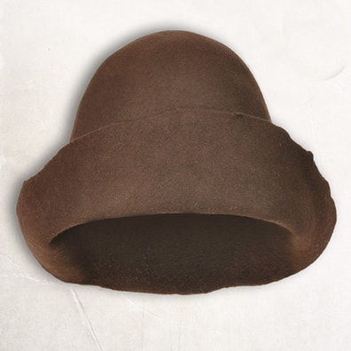 Der Filzhut ist eine typische Kopfbedeckung des Hoch- und Spätmittelalters, und wurde sowohl von Frauen als auch Männern fast aller sozialen Schichten getragen. Eine der üblichsten Tragweisen ist ihn vorne hochzuklappen und den hochgeklappten Teil dann mit Fibeln, Abzeichen oder Bestickungen zu verzieren.
