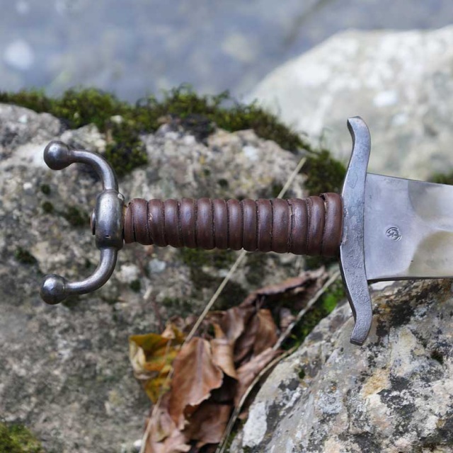 Geschmiedet nicht Showkampftauglich wegen der in Spitzlaufenden Form der Klinge