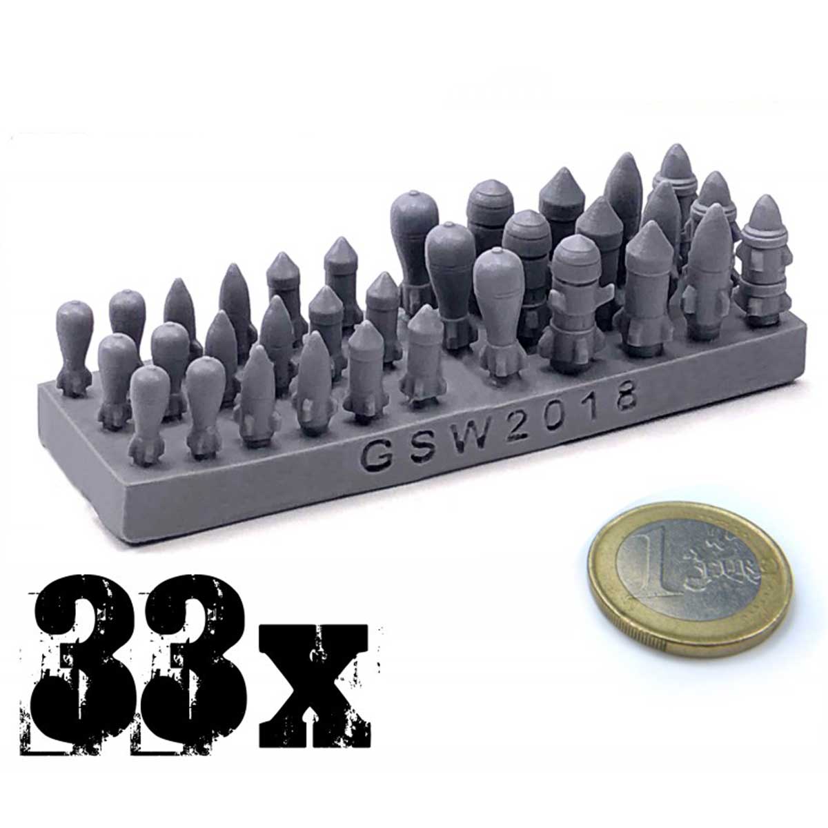 • enthält 33x Raketen aus Harz.