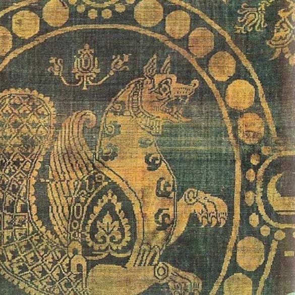 • Man benutzte es als Tuch zum Ankleiden, zur Bedeckung von Säulen oder zum Schutz von Reliquien. Das Motiv, genannt “”senmurv”” oder “”simurgh”” war sehr beliebt und wird in vielen Varianten bis in das mittlere Mittelalter zurückverfolgt.”