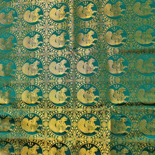• Diese Seide wurde wahrscheinlich in Byzanz hergestellt und dann nach ganz Europa ausgeführt. Es ist auch möglich, dass einige Brokatstoffe dieses Typs aus dem Sassanidenreich stammen.